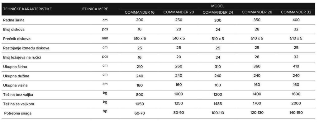 Kombinacijom savremenog dizajna, prilagodljivosti i otpornosti, Commander Tanjirača se izdvaja kao jedno od najboljih rešenja za pripremu zemljišta. Njena upotreba donosi ravnomernu obradu, očuvanje vlage i značajnu uštedu resursa.
